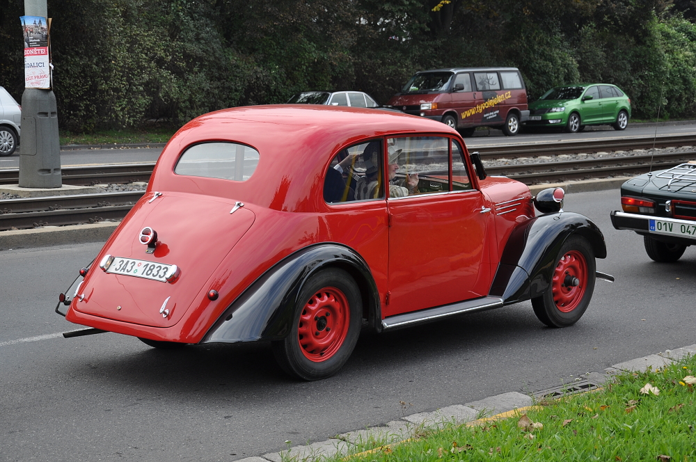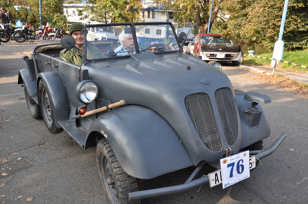 V Praze 4 u Žlutých lázní se sjela pěkná stará auta, aby se pustila do vrchu Pankráce a zdolala ho ve dvou jízdách pravidelnosti ulicí Jeremenovou. Přijely pěkné československé předválečné vozy i cizí excelentní, opravdu noblesní vozy za miliony. A tak byly k vidění krásné škodovky typu Polular sport 2 sic, stejně tak vzácný Tudor 1201 2 sic a vedle nich překrásně obnovený obří vůz Laurin-Klement Škoda 110 z roku 1927 nebo Pierce Arrow. Z Pragovek Piccoly i Alfy. Za Tatry jsme zaznamenali T75 kabriolet, který vypadal tak nedotčeně, jakoby renovace skončila v předvečer soutěže. Naproti tomu s Tatrou 57 r.v. 1932 přijel pan Jaroslav Šimek z Kladna. Auto renovoval před 20 lety a nyní se chystá, že s vozem zase něco udělá - má bílé ostravské číslo, pěkný motor a Scintilla dynamo a relé. Vůz už má dveře na třech pantech a nemá nalévací otvor oleje na ventilátoru. Nicméně vůz má raritní mírku hladiny benzinu s upevněním na nádrži. Viz fotky! Taková specialita se dochovala jen velmi vzácně. Bořivoj, člen našeho Tatraklubu, nechal doma svou pěknou T57B a přijel překrásnou Pragou Alfou, pěkně se k ní i oblékl do dobového. S pěknou černou T57 jsme viděli pana Pátka s manželkou a potěšil i úsměv nestárnoucího ing. Kotase s jeho dvoumotorovou zajímavostí - německým štábním vozem z druhé světové války: ILO. (10/14)