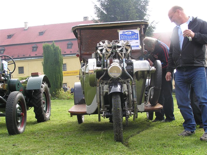 Jako každoročně, na státní svátek připomenutí konce II. světové války, 8. května, se uskutečnila další Soutěž elegance v parku u Roztocké vodní tvrze. Překvapivě krásná sobota po chladném a deštivém týdnu byla pro diváky příjemnou změnou. Otázkou je, zda přeďpoveď chladu, polojasna a deště neodradila některé potenciální účastníky - letos přijelo poněkud méně automobilů a velmi málo motocyklů. Organizátoři oproti minulým letům parkování vozidel příliš neorganizovali, takže na louce u jezírka, která bývala tradičně určena pro nejstarší a nejcennější vozy, parkovala i poválečná auta a některá převálečná naopak musela parkovat ve spodní části parku u vodního příkopu. Nikomu to jistě neublížilo, ale působilo to trochu chaoticky, jakoby se to vymklo z rukou. Již podruhé se na výstavě objevila krásná opakovaná stavba francouzského Blériotu XI., na jakém náš aviatik ing. Jan Kašpar poprvé předvedl českému publiku v Pardubicích let aeroplánem 19. dubna 1910. Velmi pěkná byla výstava traktorů - jeden z nich dokonce přitáhl maringotku postavenou na starém podvozku s koly z tvrdogumy ve stylu domečků na kolech, jaké provázely donedávna život "světských" při jejich putování od města k městu. (5/10)