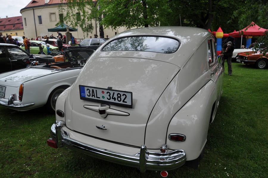8.května 2014 bylo velmi proměnlivé počasí, den před tím pršelo. Asi proto bylo letos trochu méně účastníků s vozy a trochu méně návštěvníků. Naproti tomu byla výstava automobilů, motocyklů a dobových kočárků doplněna o velmi pěknou přehlídku modelů šatů 20. a 30. let a klobouků té doby. Přítomen byl mistr V.Zapadlík, který ochotně podepisoval svoje reprodukce, krásný je například kalendář roku 2014 s titulní stranou s Národním divadlem a samozřejmě mnoha krásnými historickými vozy a postavami kolem. Kamarádi si mistra Zapadlíka dobírali, jak byli překvapeni, že umí namalovat i postavy a architekturu a nejen auta. Na webu města Roztok jsem se dočetl tyto zajímavé informace.