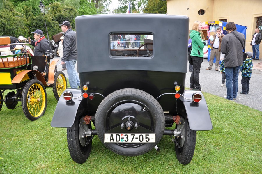 Nabízím přehled nejzajímavějších automobilů, přednost mají jako obvykle vozy Tatra. Během dopoledne přijela skromě Tatra 12 (1930). Její majitelé ji mají v rodině již po tři generace, vůz je stále přihlášený a s bílou SPZ. Auto není renovované, je omšelé, ale vypadá romanticky jako právě nalezené ve stodole. Zaříkal jsem pana majitele, ať vůz nerenovují, ale jen udržují a konzervují, protože jeho půvab je právě v té překrásné původnosti. Doufám, že se na tuto Tatru budeme moci těšit i na dalších akcích. (5/14)