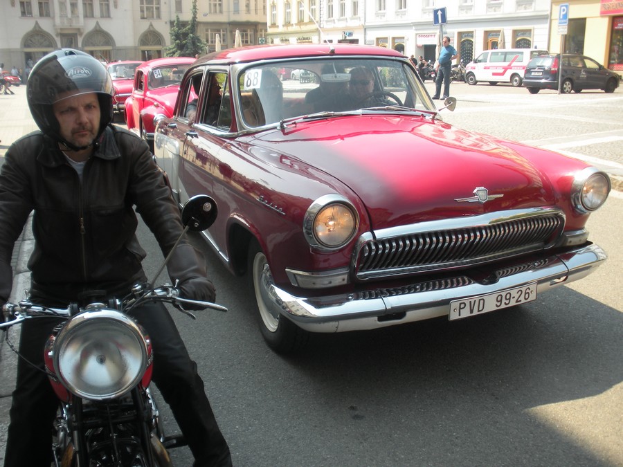 Na rozlehlém náměstí před radnicí v Prostějově se sjely krásné veterány z celé Moravy. Smyslem bylo přilákat Zetky a Wikovy, ale nakonec přijely i Tatry, Škodovky, Aerovky a spousta motocyklů. Převahu ovšem měla auta kategorie PAST. Po projíždce městem se průvod vozidel vrátil na původní místo srazu.