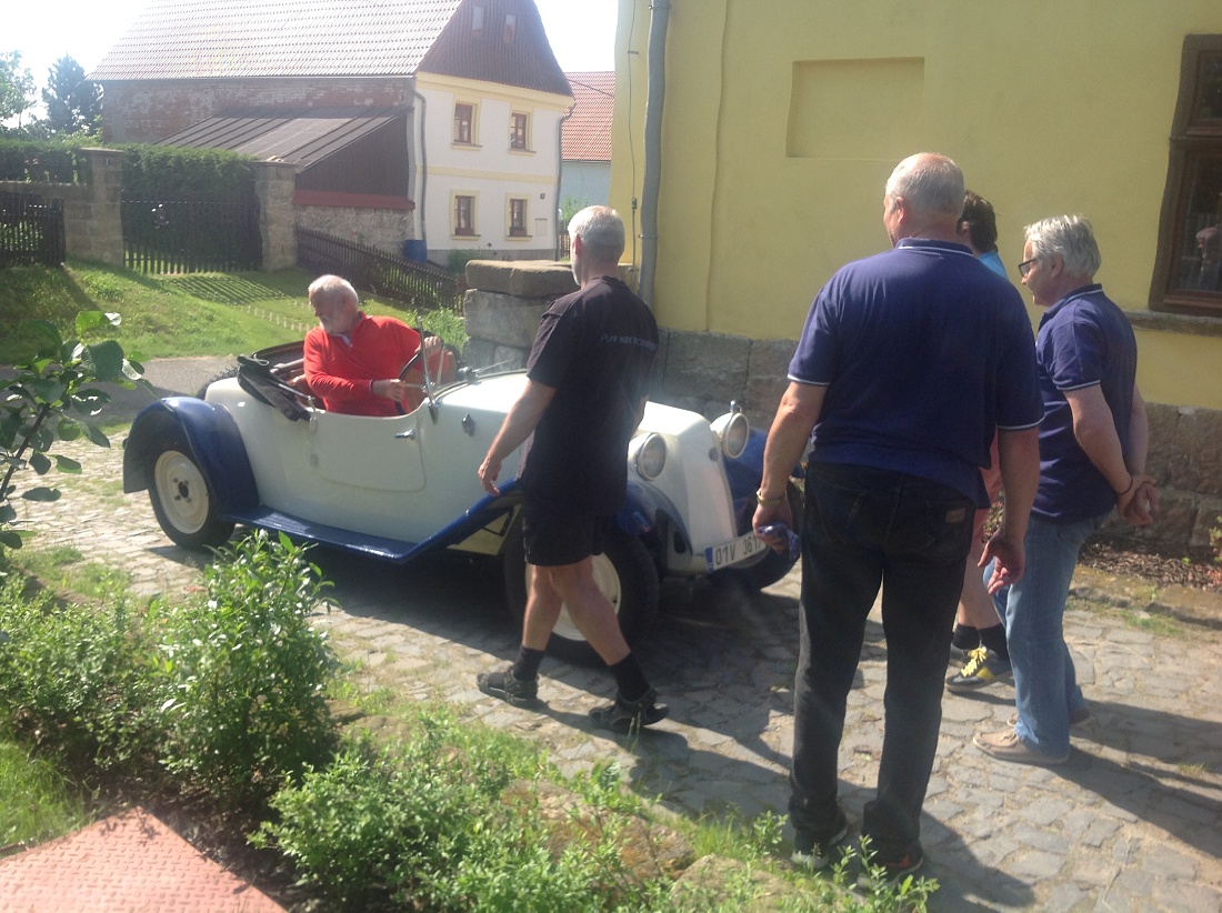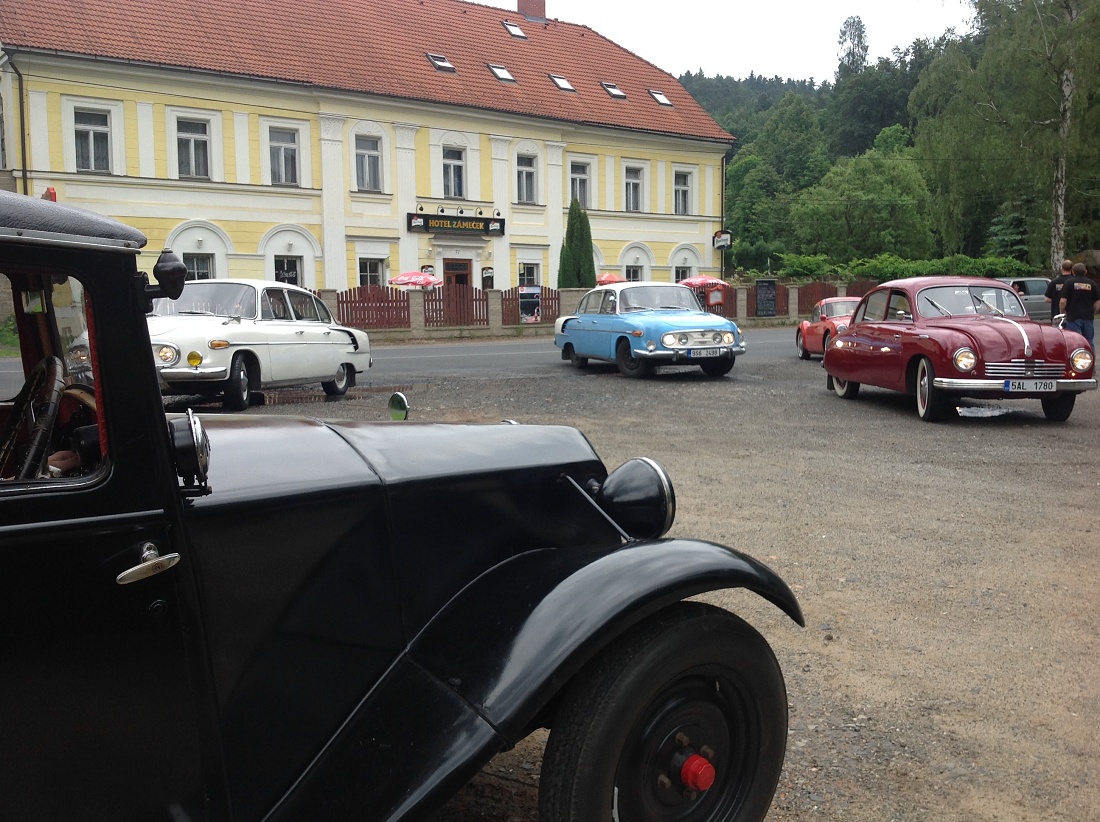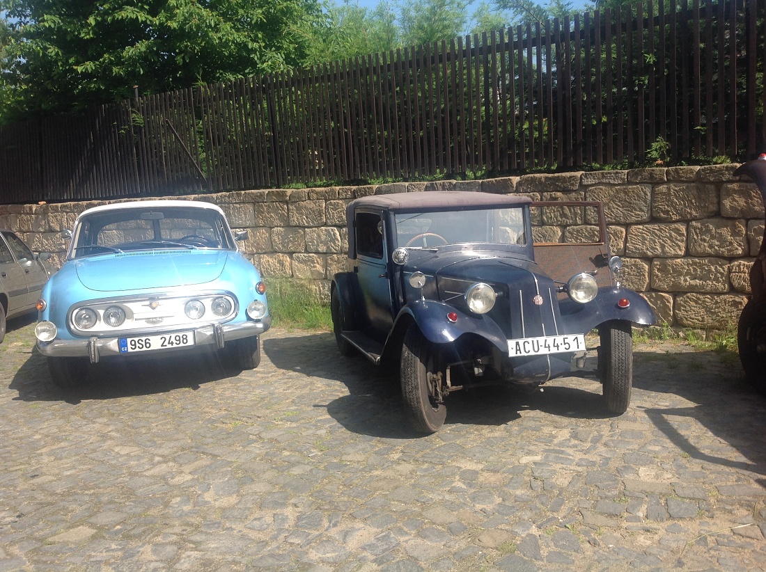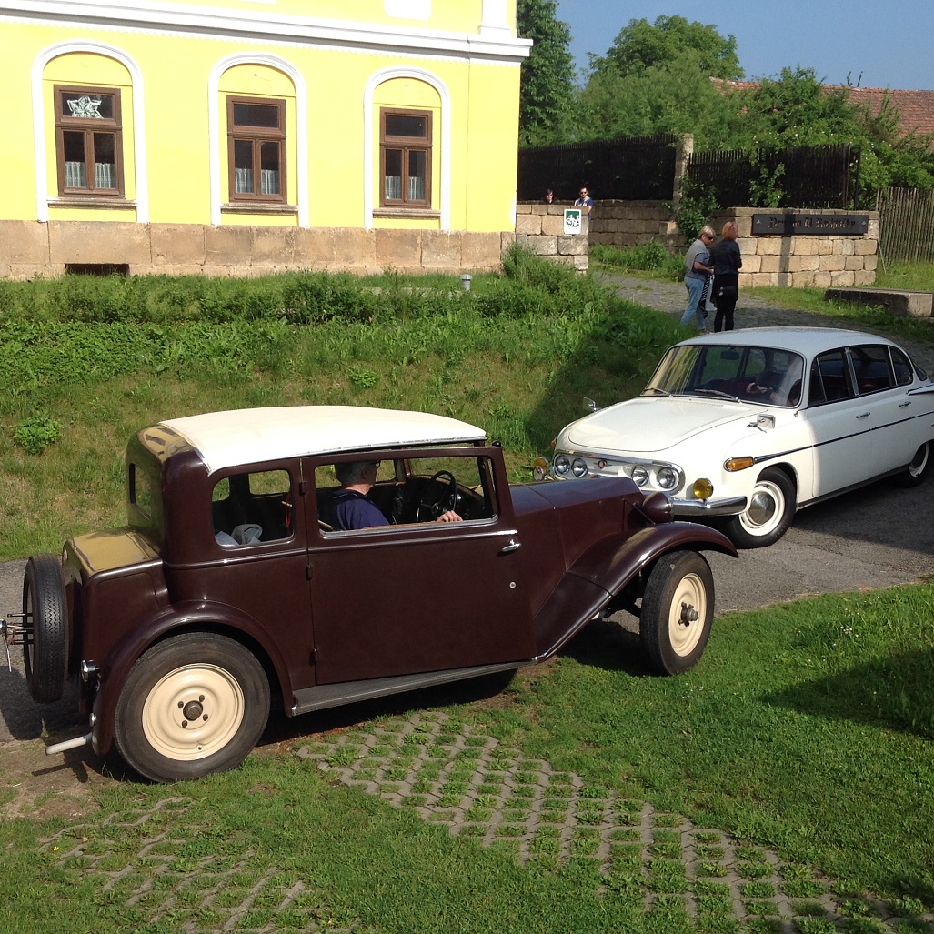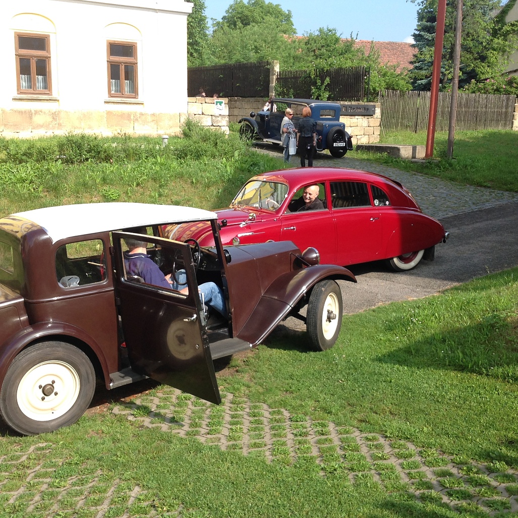 Na konci deštivého týdne se o víkendu 3.-5. června sjeli členové pražského Tatra klubu na severu Čech v Loubí u Holan na svém klubovém výletu. Na mapě se to zdálo daleko, ale cesta Kokořínskem byla lákavá a místo našeho ubytování překrásné. Vesnička Loubí je velmi malá, ale historicky velmi zajímavá. Původně středověká obec dřevěných domů téměř celá v roce 1844 vyhořela. Vrchnost tehdy nařídila obnovit obec podle nových pravidel, upravit vlastnictví pozemků tak, aby následovaly v celistvých pruzích za domy, který byly naplánovány stavebně dál od sebe a především z ohni vzdorujícího materiálu – z kamene a cihel, na střechách pak byly pálené tašky. Tak v polovině 19.století vzniklo Lauben – později Loubí téměř celé znovu. Dodnes se tu zachovaly velké obytné a hospodářské domy, některé ještě zpustošené socialistickou ne-péčí, ale nyní již v několika případech opravdu krásně restaurované. V jednom z takových domů je i penzión U rychtářky. Před dvěma lety otevřený po sedmi letech oprav a rekonstrukcí. Z Loubí jsme v sobotu vyjeli na okružní cestu překrásným krajem Českolipska. Naše první zastávka byla na zámku Zákupy, kde jsme naše stroje mohli zaparkovat na prvním nádvoří zámku a prohlédli si nenápadný císařský zámek, letní sídlo Ferdinanda I. Dobrotivého, který vládl za Habsburské monarchie i nám Čechům jako císař do roku 1848, kdy abdikoval a pak žil na Pražském hradě a v Zákupech až do své smrti v roce 1875. Zákupy byly jeho letním sídlem. Díky znárodnění habsburského majetku v roce 1918 se zámek dochoval i s překrásnými interiéry a mobiliářem císařem opravdu dotýkaných věcí. Mimořádnou zajímavostí byl např. výtah, jeden z prvních na světě v té době. Další naše cesta vedla v Zákupech na náměstí, kde stále funguje s více jak stoletou historií původně rodinná, pak socialistická, nyní soukromá firma vyrábějící zábavné a propagační zboží z papíru. Pracuje se stále metodou klihem provlhčeného papíru ručně zatlačovaného do hladkých forem. Vznikají tak různé bizarní masky na karnevaly, lidové slavnosti nebo firemní akce. Od pana vedoucího, který z části firmy vybudoval místní muzeum roztodivností, jsem si koupil několik krásných skládacích lampiónů zdejší výroby. Odpoledne jsme navštívili opravdu rozsáhlé a bezpochyby významné muzeum hasičské techniky v Novém Oldřichově u Kamenického Šenova. Vystavují hodně autentické techniky – stříkačky z poslední čtvrtiny 18. století i hasičský žebřík Magirus z počátku 20. století – samozřejmě na loukotích a tažen 4 valachy mohl dosáhnout výšky 28 metrů. Novější čerpadla Stratílek i požární vozy Praga RN, Tatra 805 nebo Renault z roku 1926, či Mercedes z roku 1940 nebo Magirus. Specialitou expozice je parní stříkačka Flader z roku 1900 – než se natlakoval kotel párou, stříkačka mohla stříkat alespoň poháněna dvěma muži. Výlet se vydařil – jak dobrou náladou zúčastněných, tak počasím. Najeli jsme cestou tam a zpět a v okolí Loubí kolem 280 km. Spravovalo se jen drobně – Vítek Čermák si poradil s utrženým napínákem alternátoru na svém trojkarburátorovém Saabu 96, Vláďa Penížek musel pod svůj Jaguár, aby dolil olej do rozvodovky a Pavel Hašek po trablech se startováním své MG raději roztlačil. Neopravovala žádná Tatra! Doufám, že se v podobné sestavě zase za rok na podobně krásném místě opět potkáme. (6/16)
