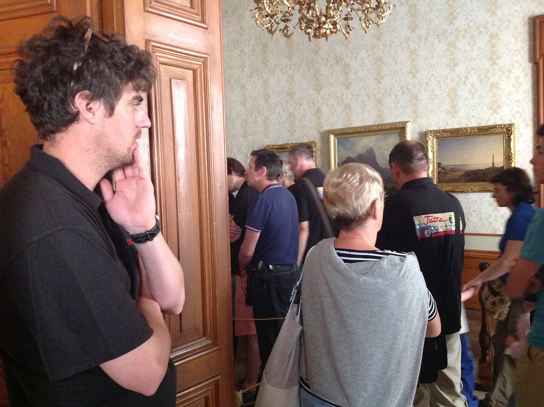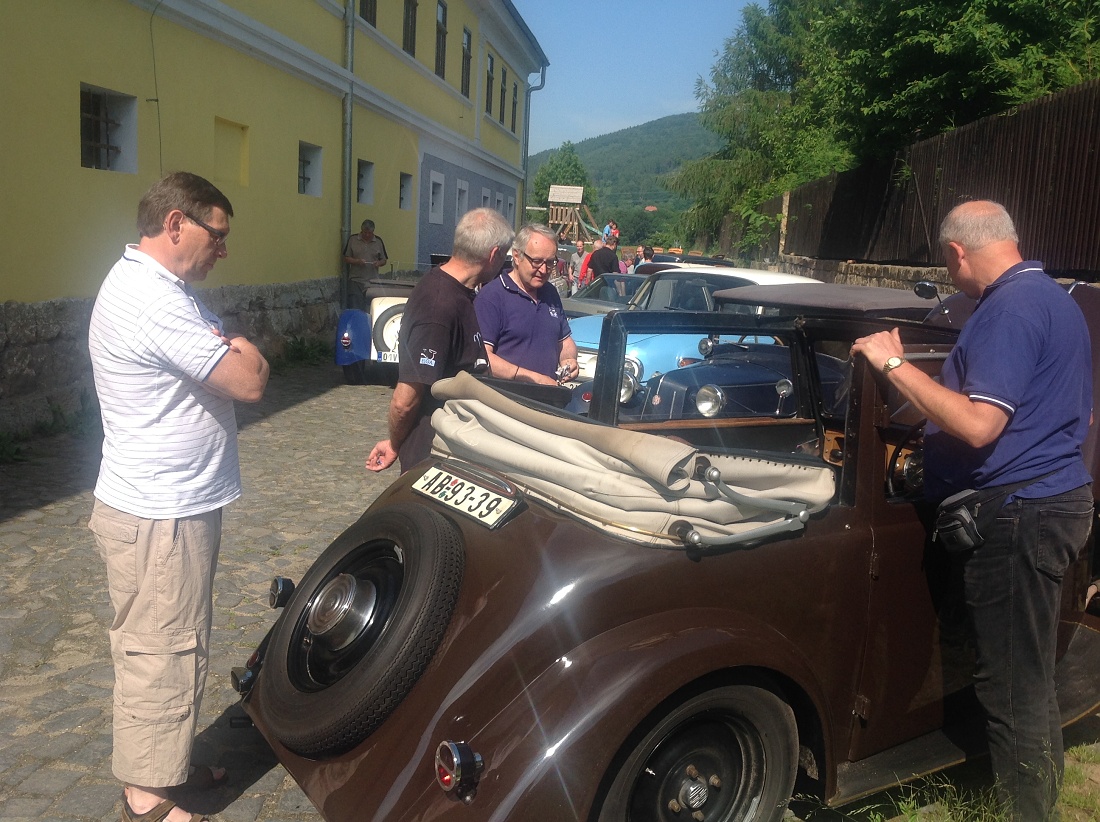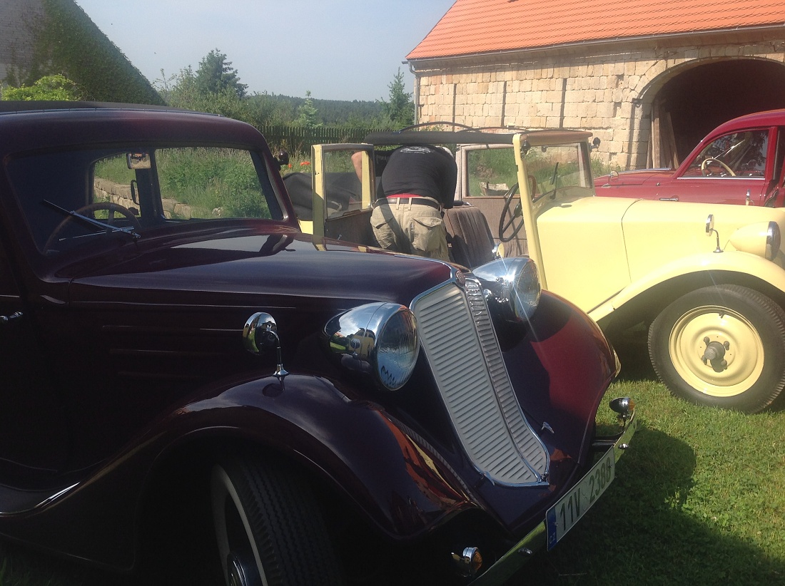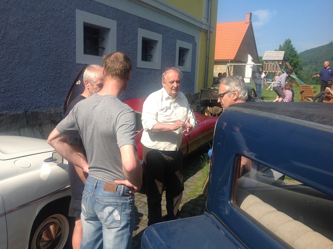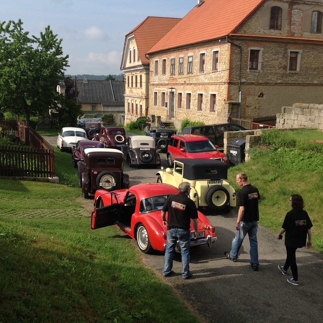 Na konci deštivého týdne se o víkendu 3.-5. června sjeli členové pražského Tatra klubu na severu Čech v Loubí u Holan na svém klubovém výletu. Na mapě se to zdálo daleko, ale cesta Kokořínskem byla lákavá a místo našeho ubytování překrásné. Vesnička Loubí je velmi malá, ale historicky velmi zajímavá. Původně středověká obec dřevěných domů téměř celá v roce 1844 vyhořela. Vrchnost tehdy nařídila obnovit obec podle nových pravidel, upravit vlastnictví pozemků tak, aby následovaly v celistvých pruzích za domy, který byly naplánovány stavebně dál od sebe a především z ohni vzdorujícího materiálu – z kamene a cihel, na střechách pak byly pálené tašky. Tak v polovině 19.století vzniklo Lauben – později Loubí téměř celé znovu. Dodnes se tu zachovaly velké obytné a hospodářské domy, některé ještě zpustošené socialistickou ne-péčí, ale nyní již v několika případech opravdu krásně restaurované. V jednom z takových domů je i penzión U rychtářky. Před dvěma lety otevřený po sedmi letech oprav a rekonstrukcí. Z Loubí jsme v sobotu vyjeli na okružní cestu překrásným krajem Českolipska. Naše první zastávka byla na zámku Zákupy, kde jsme naše stroje mohli zaparkovat na prvním nádvoří zámku a prohlédli si nenápadný císařský zámek, letní sídlo Ferdinanda I. Dobrotivého, který vládl za Habsburské monarchie i nám Čechům jako císař do roku 1848, kdy abdikoval a pak žil na Pražském hradě a v Zákupech až do své smrti v roce 1875. Zákupy byly jeho letním sídlem. Díky znárodnění habsburského majetku v roce 1918 se zámek dochoval i s překrásnými interiéry a mobiliářem císařem opravdu dotýkaných věcí. Mimořádnou zajímavostí byl např. výtah, jeden z prvních na světě v té době. Další naše cesta vedla v Zákupech na náměstí, kde stále funguje s více jak stoletou historií původně rodinná, pak socialistická, nyní soukromá firma vyrábějící zábavné a propagační zboží z papíru. Pracuje se stále metodou klihem provlhčeného papíru ručně zatlačovaného do hladkých forem. Vznikají tak různé bizarní masky na karnevaly, lidové slavnosti nebo firemní akce. Od pana vedoucího, který z části firmy vybudoval místní muzeum roztodivností, jsem si koupil několik krásných skládacích lampiónů zdejší výroby. Odpoledne jsme navštívili opravdu rozsáhlé a bezpochyby významné muzeum hasičské techniky v Novém Oldřichově u Kamenického Šenova. Vystavují hodně autentické techniky – stříkačky z poslední čtvrtiny 18. století i hasičský žebřík Magirus z počátku 20. století – samozřejmě na loukotích a tažen 4 valachy mohl dosáhnout výšky 28 metrů. Novější čerpadla Stratílek i požární vozy Praga RN, Tatra 805 nebo Renault z roku 1926, či Mercedes z roku 1940 nebo Magirus. Specialitou expozice je parní stříkačka Flader z roku 1900 – než se natlakoval kotel párou, stříkačka mohla stříkat alespoň poháněna dvěma muži. Výlet se vydařil – jak dobrou náladou zúčastněných, tak počasím. Najeli jsme cestou tam a zpět a v okolí Loubí kolem 280 km. Spravovalo se jen drobně – Vítek Čermák si poradil s utrženým napínákem alternátoru na svém trojkarburátorovém Saabu 96, Vláďa Penížek musel pod svůj Jaguár, aby dolil olej do rozvodovky a Pavel Hašek po trablech se startováním své MG raději roztlačil. Neopravovala žádná Tatra! Doufám, že se v podobné sestavě zase za rok na podobně krásném místě opět potkáme. (6/16)